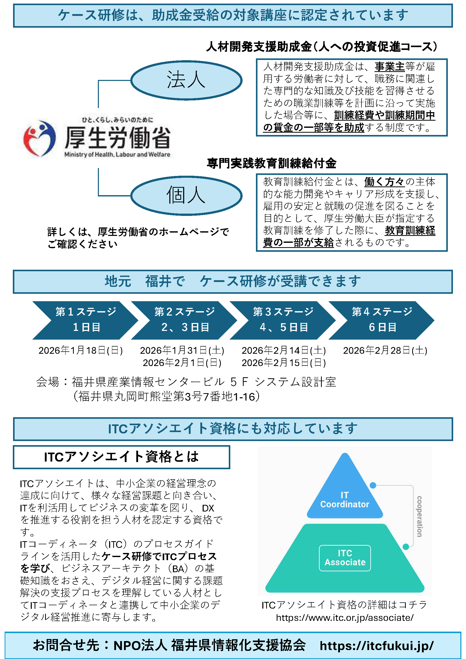 ITコーディネータ資格のケース研修は、“机上の理論”ではなく、“現場のリアルな課題”を題材に、経営とITをつなぐ実践力を身につけるプログラムです。